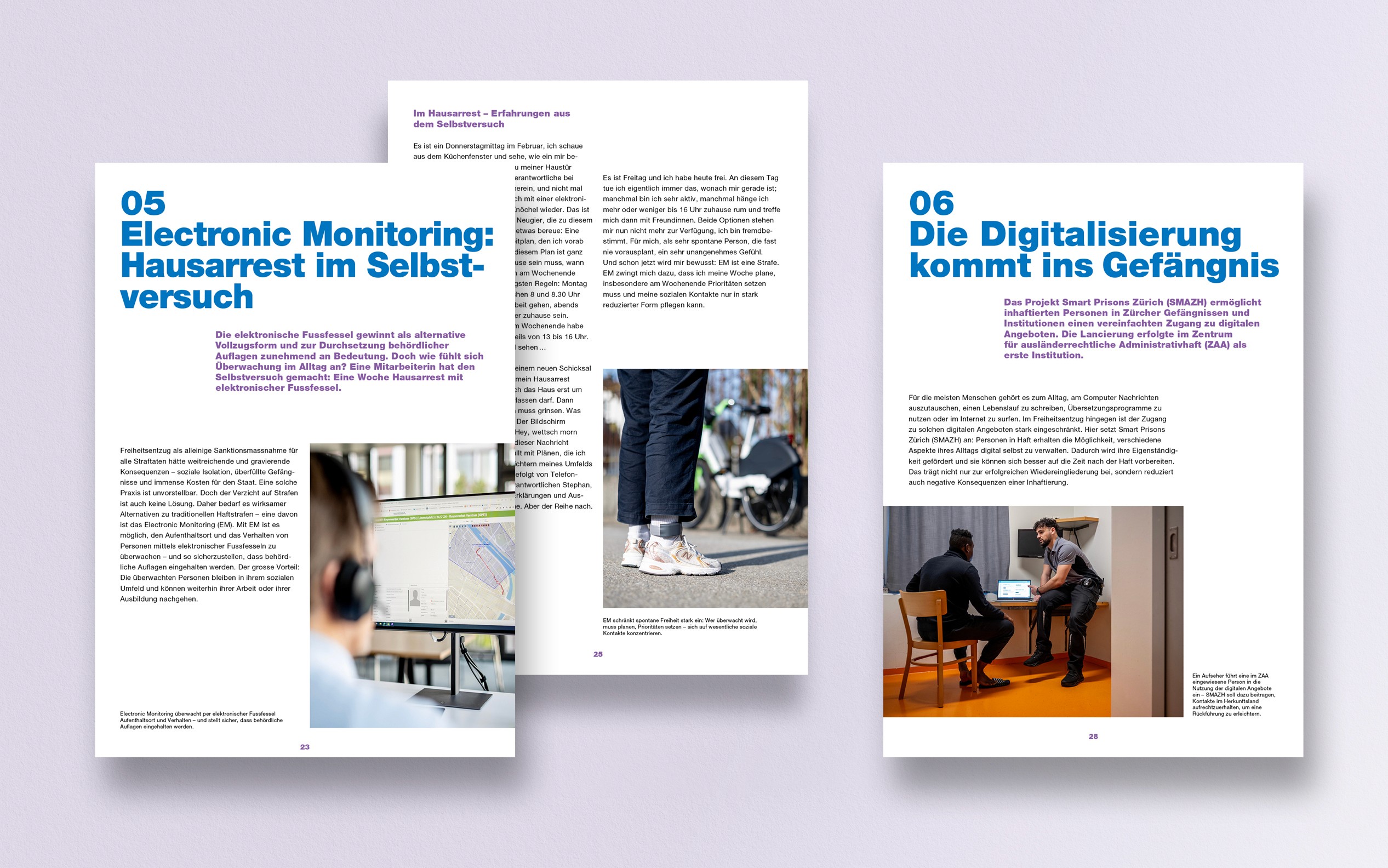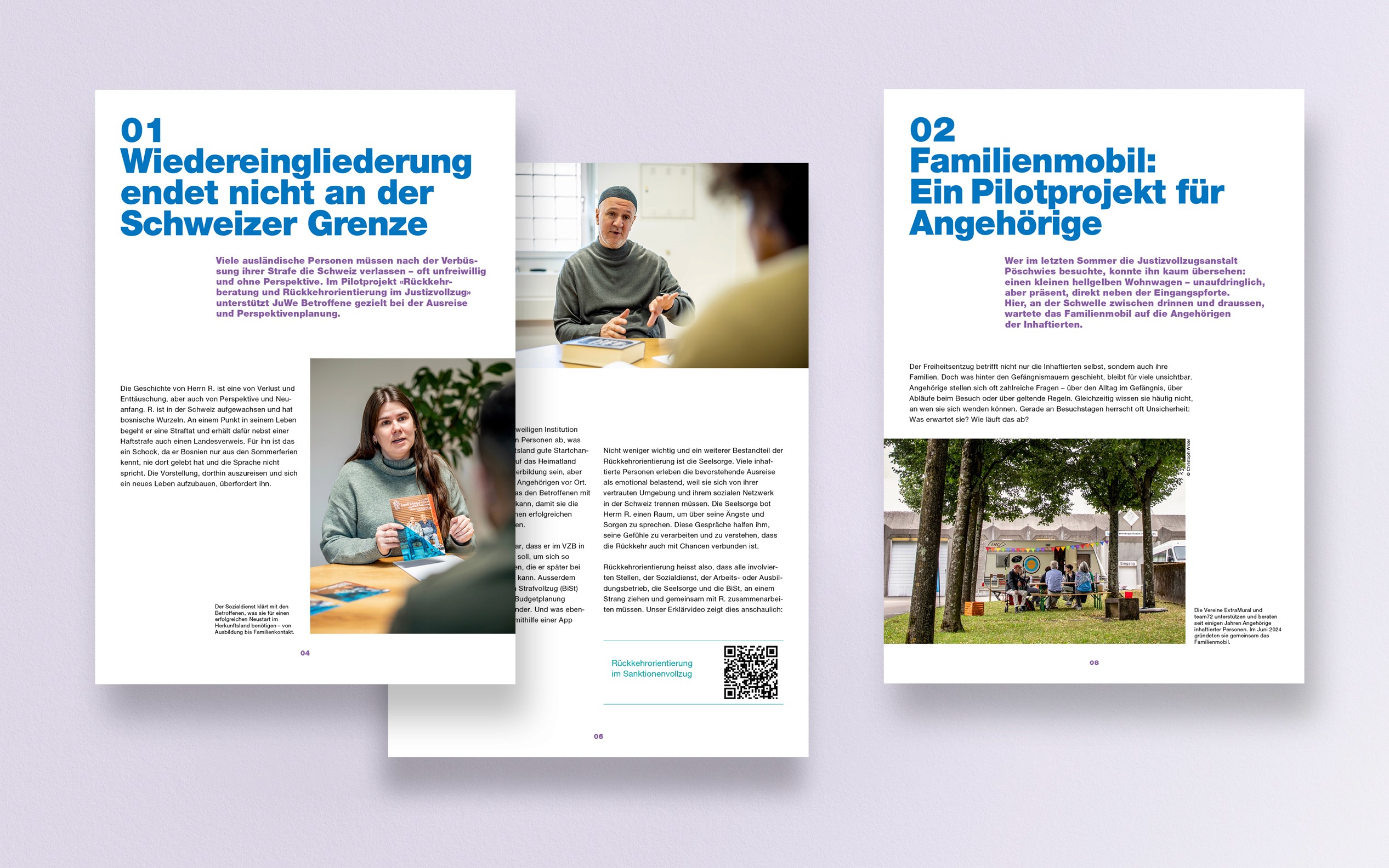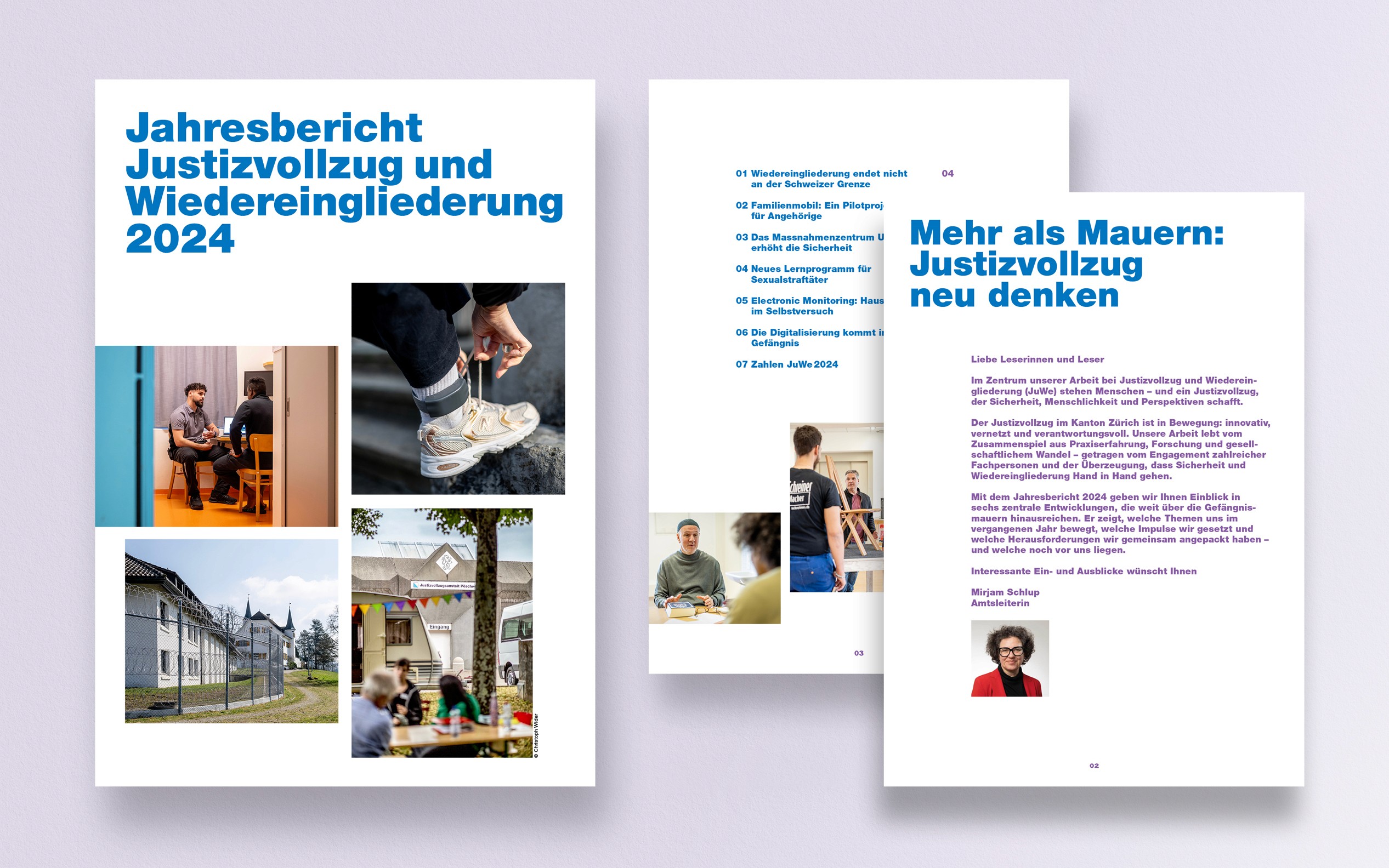 Für den Jahresbericht von JuWe stand ein Bildkonzept im Zentrum, das Einblicke ermöglicht und gleichzeitig die Privatsphäre der inhaftierten Menschen wahrt. Entwicklung der visuellen Leitlinie sowie Koordination der Umsetzung.
