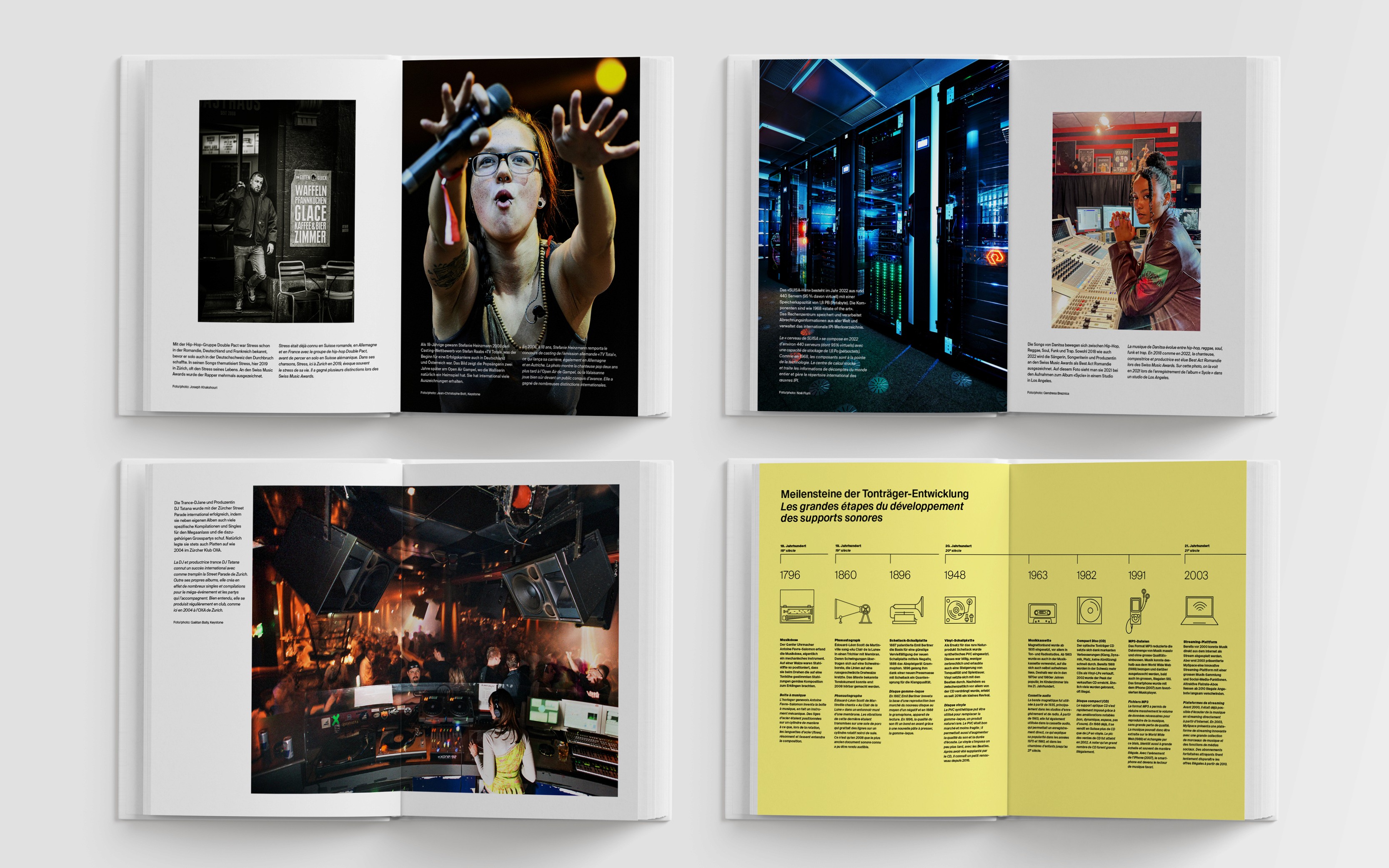 Zum 100-jährigen Bestehen der SUISA entstand ein Buch, das historische, rechtliche und technologische Entwicklungen zusammenführt. Das Editorial-Design ordnet Bildmaterial und Texte in eine klare Struktur. Gestaltung und Jubiläums-Branding wurden konsequent verzahnt – von der Konzeption bis zur Umsetzung.